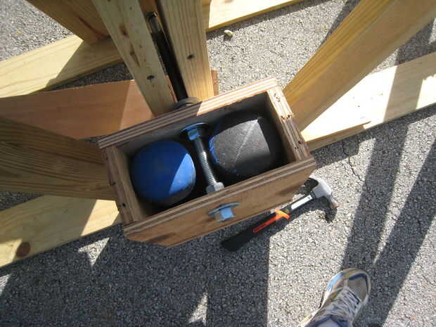 Coloque las pesas en la caja y el tornillo en la parte superior. Si los pesos son muy pesados, sin embargo, puede que desee mantener los pesos de la caja por ahora, ya que cuando se carga tienes que levantarla.
