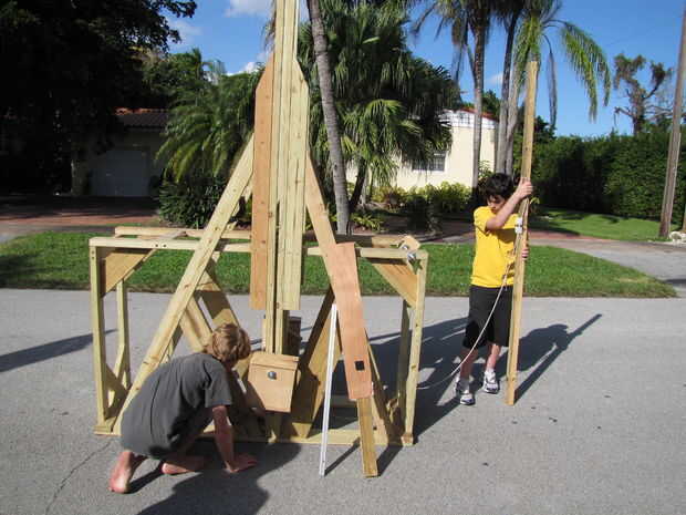 Sin embargo, si usted quiere hacer algo de fantasía que es al trebuchet (no tendrás como mucho puntería habilidad) usted podría nestle dos piezas de madera dentro de los soportes diagonales, formando una forma de v. A tornillo les pulgadas serían horizontales, no en ángulo. Extendería hacia el exterior, al igual que el conducto de la Junta.
