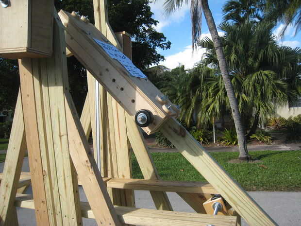 También cortar los trozos de guía de madera y arena por donde se golpea en el brazo de madera contrachapada para eliminar los "golpes", que el brazo se ralentiza y pierde energía.