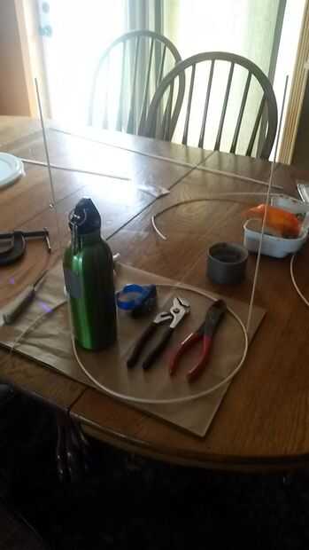 Una vez con el pegado del doblado alrededor de la aguja a la varilla de madera círculo esperar a secar y hacer esto paso a las cuatro de las tiras de madera de balsa.
