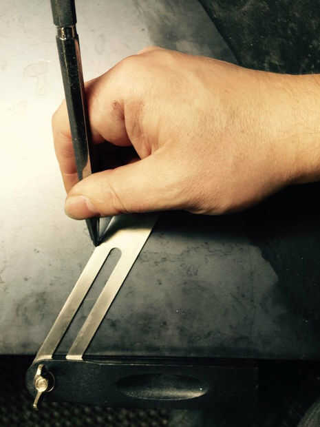 6. Marque el agujero usando la línea central como guía.