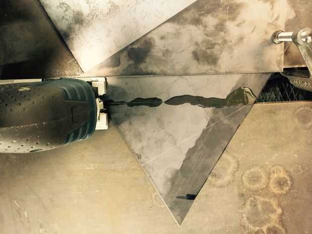 3. cortar la línea con Jigsaw. (Asegúrese que las abrazaderas estén bien apretadas y utilizan abundante aceite)