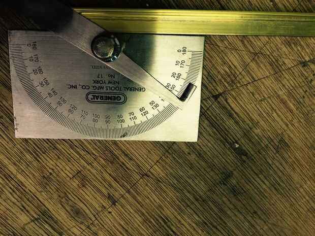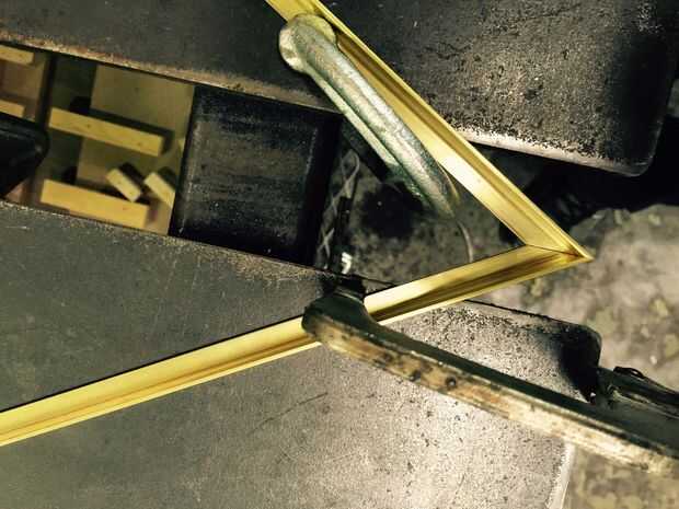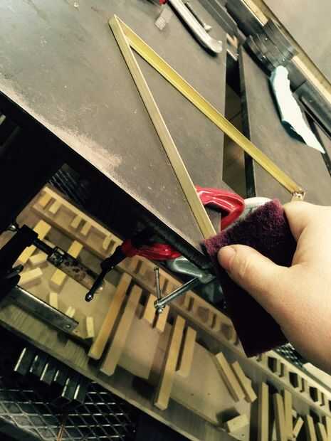 3. tomar el ángulo de latón y empuje lentamente en el uso del hierro de ángulo como una guía.