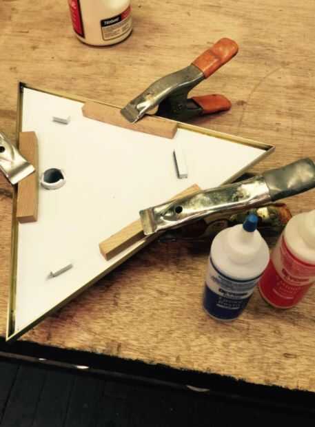 5. utilizar 3 trozos de madera incluso alturas y el ángulo de latón a la placa superior de la abrazadera.
