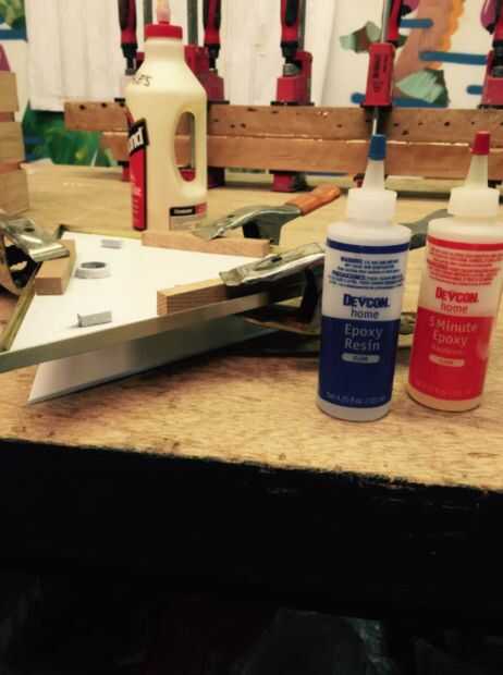 Pasos (epoxy de aplicación a los ángulos de soporte y latón):