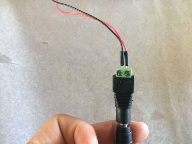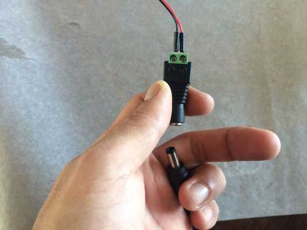 2. la salida (B, G, R, V +) <---de tira del LED. Entrada (V +, V-) <---conectar adaptador de corriente DC hembra.