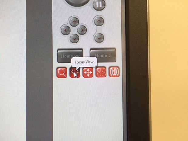 8. Haz clic en el botón vista de foco, haga clic en cualquier área abierta en la cama para colocar la lente que puede medir la distancia correcta entre la lente y el material.