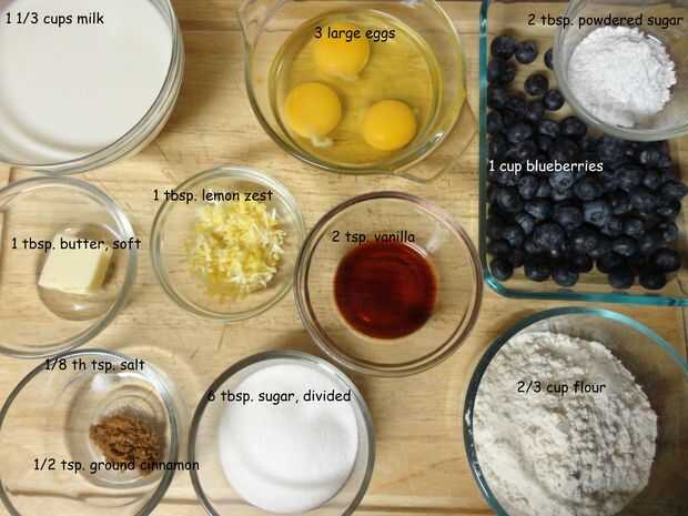 Estos ingredientes cuando nos hará, arándano limón Flognarde. No es un flan, como Burlee de crema o Flan Español sino más bien un bateador afrutado como torta. Esto se considera un postre francés. En realidad no es eso dulce con sólo 6 tbsps. de azúcar y tiene tres huevos. Por lo que incluso podría ser algo para el desayuno. Esos tres huevos proporcionan 22 gramos de proteína. Pero sólo si te comiste la Flognarde todo. Hay cinco porciones, por lo sería unos 3 a 4 gramos de proteína por porción