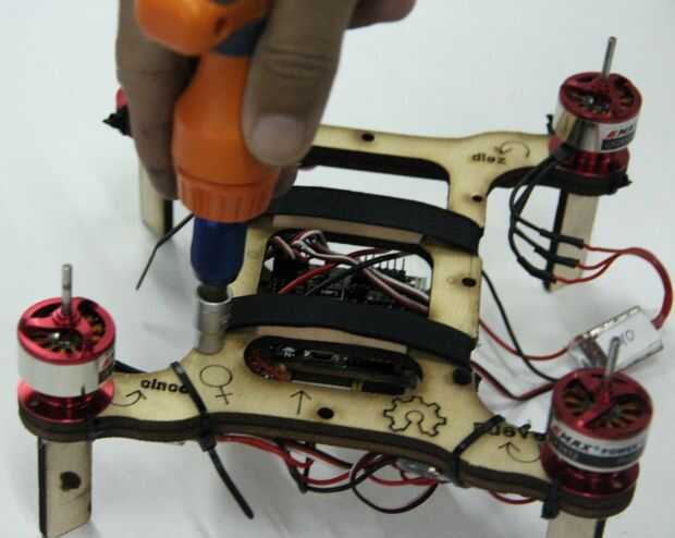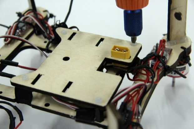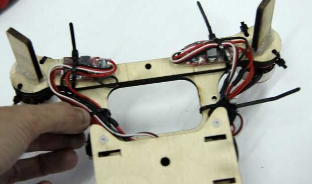 Atadura de cables del ESC y los cables a la estructura principal. Sólo tener en cuenta dejar suficiente espacio para la espuma protectora de la pierna.