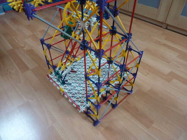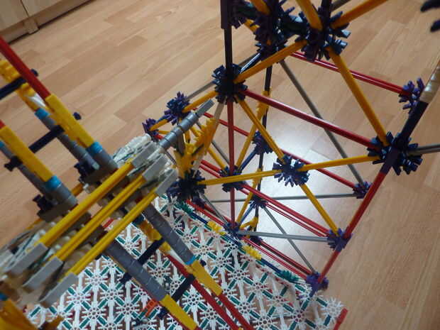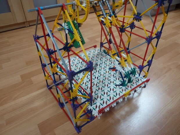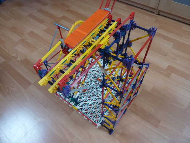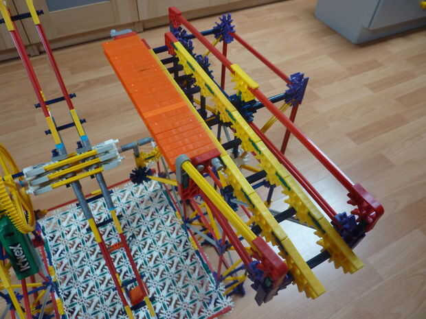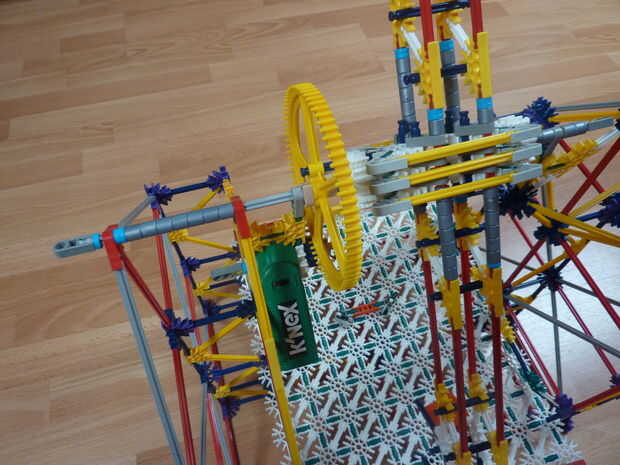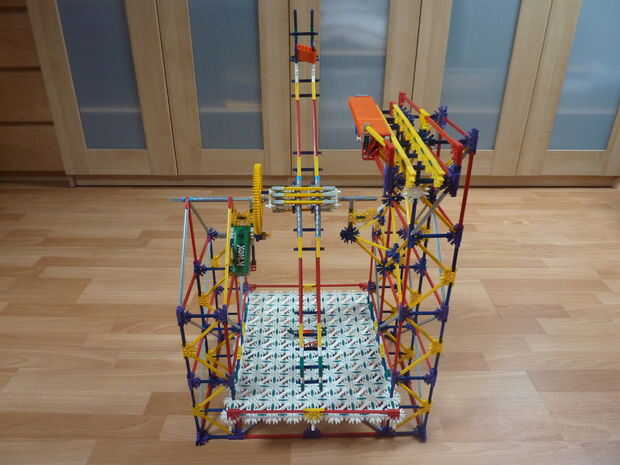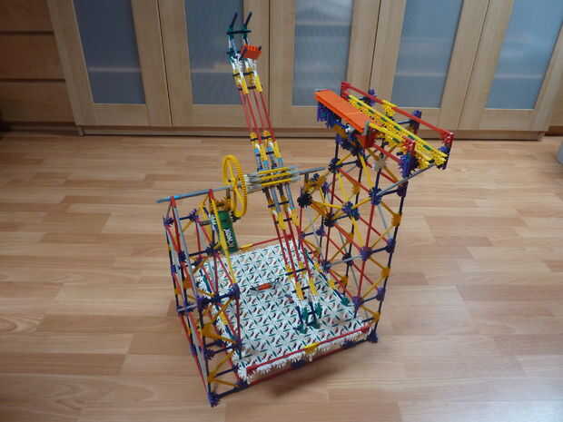 Cuando no está en una máquina de la bola, creo que el elevador de brazo doble piso queda bastante feo. Pero se ve mejor cuando construyes una máquina de la bola alrededor de él.