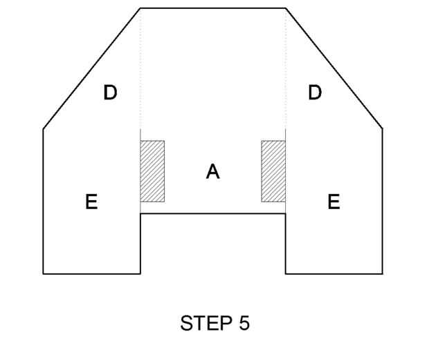 Reforzar las regiones indicadas del colgajo con la cinta, doblar la cinta alrededor de los bordes para cubrir ambos lados.