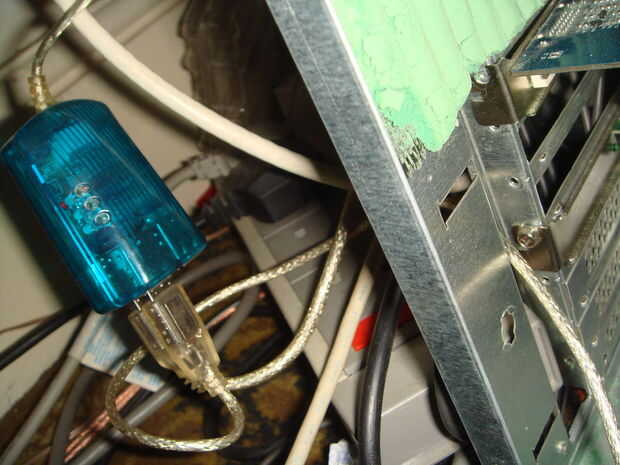 Usé un cable de extensión USB tomado hacia fuera a través de una ranura vacía en la parte trasera para conectar el hub al pc.
