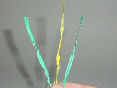 Tendrás tres lazos de torcedura. Un color claro (para la flor), dos oscuras (para las hojas).