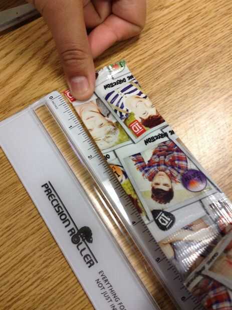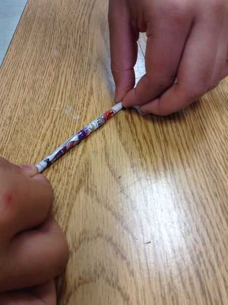 En primer lugar, tienes que empezar con la cinta de corte 5 1/2 pulgadas de largo. Usted empezará entonces envolviendo la cinta alrededor de la paja.