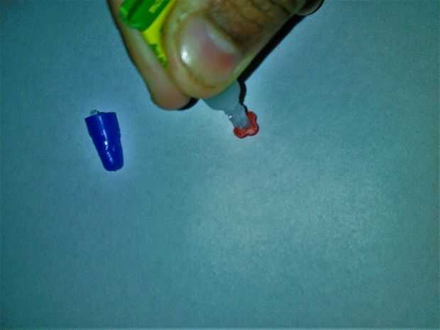 Tomar un pegamento fuerte y poner el grano de la flor.