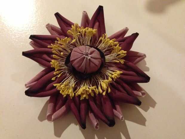 Para hacer las cosas más interesantes, puede utilizar la parte de atrás de los pétalos en lugar de la parte delantera o incluso coser dos flores encima de la otra. También puede recortar los tallos de pétalos con tijeras y utilice hilo para coser los bordes.