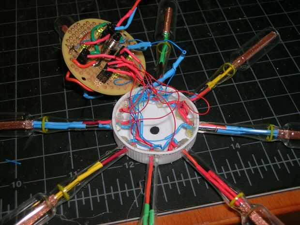 Coloque el extremo de la flauta de la Asamblea de LED y pegamento caliente en el lugar. Asegúrese de no pegar las flautas demasiado profundo en la tapa, necesitamos el espacio para los cables. La soldadura de cada LED suelo conduce a una ventaja de nuestro arnés "Y". Conecte con el conector de tierra, 4 abajo a la derecha.