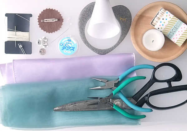 tijeras, alicates (mina son nariz de aguja y redondos de la nariz), aguja (aguja de abalorios y regular), vela, fósforos o encendedor, tres diferentes tamaños círculo-hacer-cosas, lápiz (no en foto)