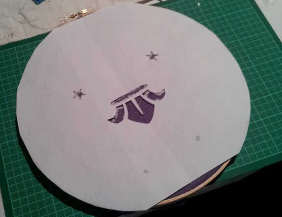 Estire a la tela fieltro púrpura en el anillo del ganchillo.