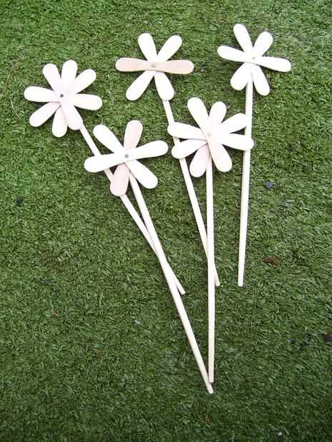 Taladrar un agujero correspondiente en el palillo y esto hilo de rosca en el tornillo. Añada la tuerca y apretar. Como alternativa, 'pétalos' unir y pegar palillos.