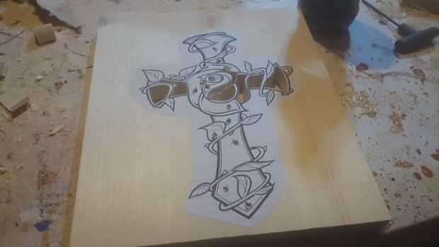 Flor de madera Cruz con Sierra de calar (2 / 5 paso)