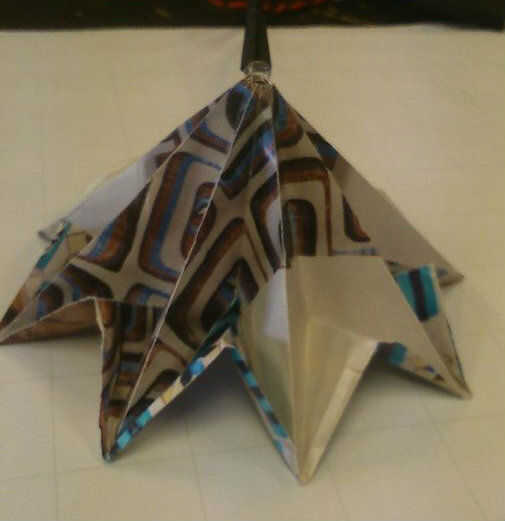 Para este paso, usted necesita la flor de origami y el circuito de LED completo. Cortar el extremo de la flor y el LED de alimentación a través del agujero en el centro de la flor. Como tienes la flor para que no caiga aparte, podemos agregar el sépalo de la InstaMorph para celebrar juntos.