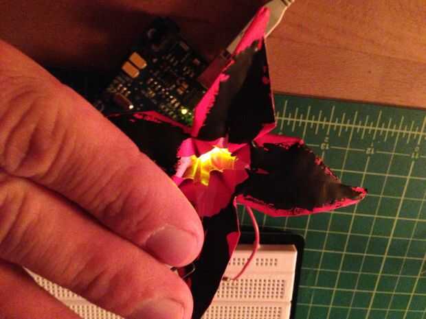 Como adición, podría incorporar un LED en la flor así o hacer varias flores para conectar hasta el Arduino.
