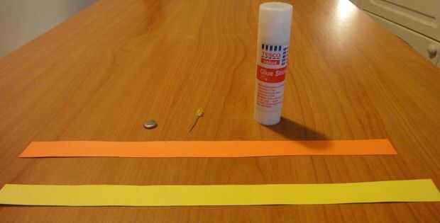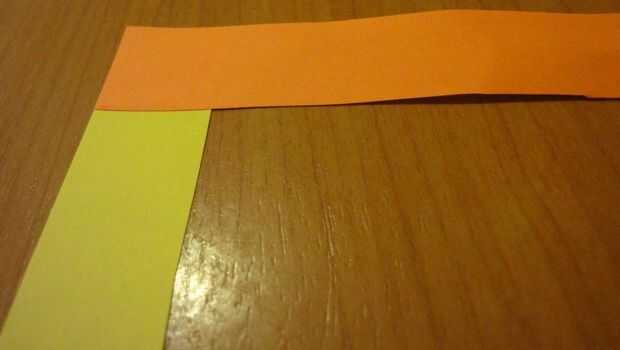 Doble la tira inferior (amarilla) y colocarlo encima de la franja superior (color naranja).