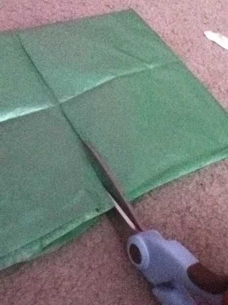 materiales:-Papel de seda (cualquier color y por lo menos 10 pies cuadrados)-Tijeras-A la regla-Un lápiz-PrecintosPaso 1: Medir y trazar Instrucciones1. Coloque el papel de tejido sobre una superficie plana (una mesa o el piso hará). Mida y marque (c
