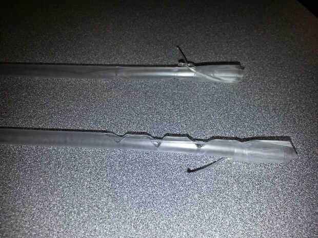 Bien cinta nylon para la paja. La cinta sobre el nudo. El nudo ayudará a evitar el nylon resbale al jalarlo para animar los brazos. Prueba tus brazos, un montón de gente sonrisa cuando hacen esto.
