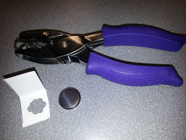 Doblar la pieza por la mitad. Use una perforadora para hacer aprox. un ½" por ½" agujero.