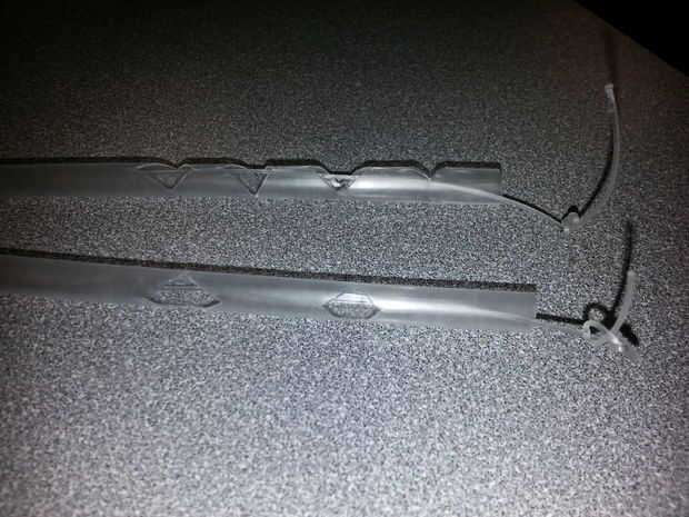 Línea cortar 2 piezas de pesca de nylon, 3 x la longitud de una paja. Un nudo en un extremo y ponerlos a través de la paja con muescas (los brazos).
