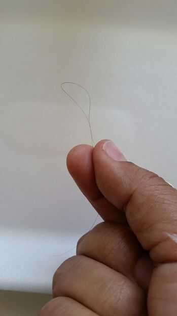 -Cuando las uñas están secas, coge una hebra de cabello y dóblalo.