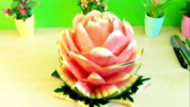 Sandía no sólo es deliciosa comida, también puede ser utilizado en varias ideas de talla. Permítame mostrarle una de estas ideas - cómo tallar una sandía se levantó. Puede hacerlo y sorprender a alguien que amas. Por lo tanto, vamos a empezar.Paso 1: