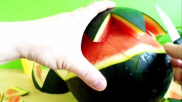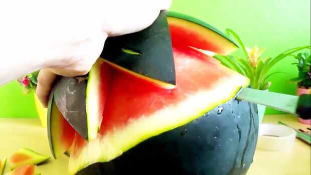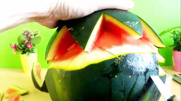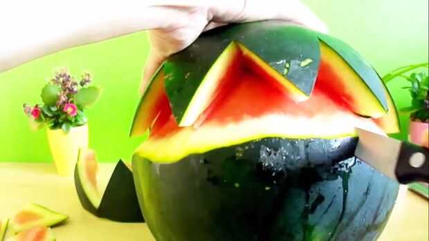 Sandía no sólo es deliciosa comida, también puede ser utilizado en varias ideas de talla. Permítame mostrarle una de estas ideas - cómo tallar una sandía se levantó. Puede hacerlo y sorprender a alguien que amas. Por lo tanto, vamos a empezar.Paso 1: