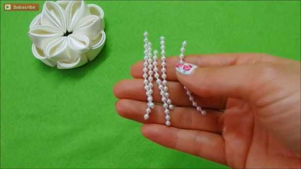 Corte de los pedazos de cadena de perlas aproximadamente 2,5 pulgadas (5, 6 cm). Tendrá seis piezas.