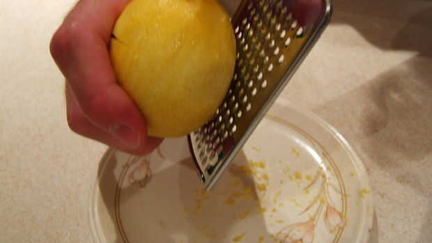 -ralladura de 4 limones entonces em jugo - chuck la ralladura y el jugo en el cubo! (se sienten una tendencia aquí?)