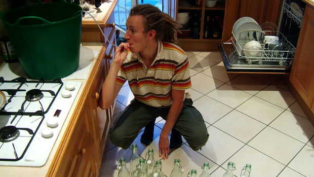 justo em de licencia ahora durante otros 8 días en botellas (los tarros) para el resto de los azúcares dulces para transformarse en alcohol y los gases a buil cierta presión.