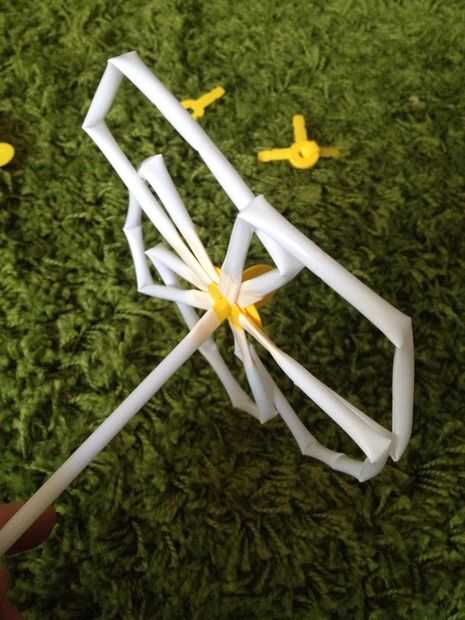 Agregando otro strawbee solo brazo, puede cambiar fácilmente la posición de la flor: cualquiera que mira fijamente al sol, o posicionado más como un molino de viento.