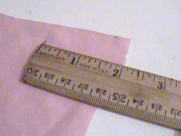 corté una tira de unos 2 por 14. Entonces solo cortar en trozos de alrededor de 2. Digo trozos porque son todos desiguales y torpe.  Tenía alrededor de 8 plazas.