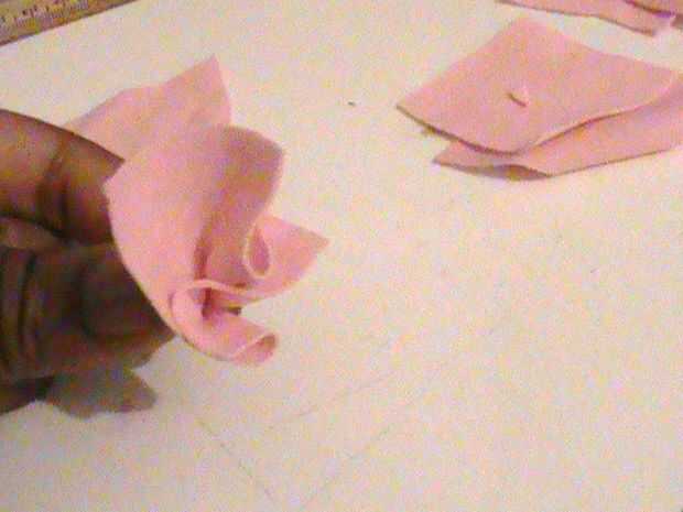 Después de cortar los trozos de su tiempo para hacer pedales. Sólo tiene que colocar un punto de pegamento en el centro de la parte cuadrada. Luego tomar el centro y apriete hasta que quede una punta. Me gusta mina gire mientras el pegamento seca por lo que puedo conseguir todos los lados.