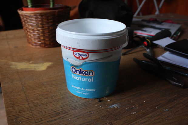 Los lados de las formas de pote de yogurt los pétalos, así que corte las partes superior e inferior de la olla y luego cortar las tiras de los lados. Hice una flor de loto, con 8 pétalos, que baja de la curva. Así cada par de pétalos se hace de mitad de la circunferencia del bote. Las fotos le dará una buena idea de lo que estoy hablando.