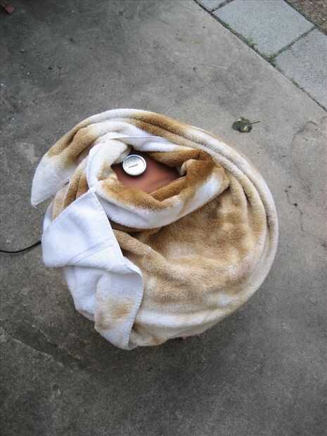 No pude conseguir un sello bastante bueno alrededor del borde, así que terminé envolviéndolo en una toalla. He pensado sobre la guarnición del borde con sellador de silicona o algo así, pero todavía no he llegado a él. Parece que funciona muy bien sin él.