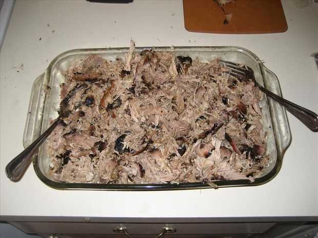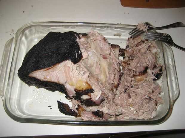 He leído que temperatura interna ° 190 es ideal para el cerdo tirado, pero creo que 200° es el camino a seguir. Luego deja reposar durante una hora.