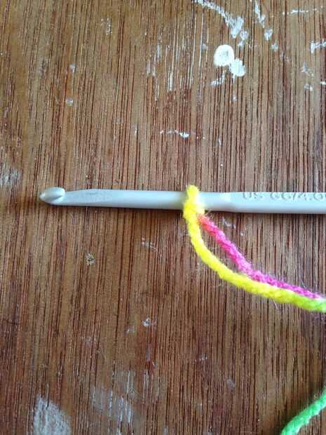 Paso 1: Necesitarás: .yarn .crochet gancho. Tijeras .pom poms o diamantes de imitación (opcionales)Paso 2: Haga un nudo en el gancho de ganchilloPaso 3: Enrollar Paso 4: Envolver y tire la parte inferior cadena encima de uno 6 veces (o la cadena de p