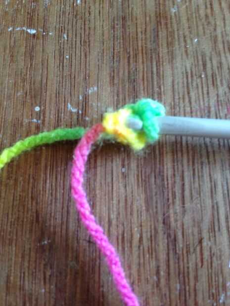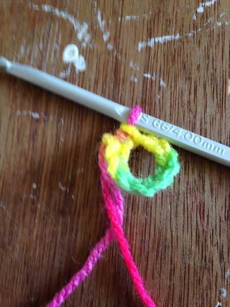 Paso 1: Necesitarás: .yarn .crochet gancho. Tijeras .pom poms o diamantes de imitación (opcionales)Paso 2: Haga un nudo en el gancho de ganchilloPaso 3: Enrollar Paso 4: Envolver y tire la parte inferior cadena encima de uno 6 veces (o la cadena de p