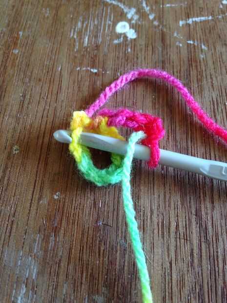 Paso 1: Necesitarás: .yarn .crochet gancho. Tijeras .pom poms o diamantes de imitación (opcionales)Paso 2: Haga un nudo en el gancho de ganchilloPaso 3: Enrollar Paso 4: Envolver y tire la parte inferior cadena encima de uno 6 veces (o la cadena de p