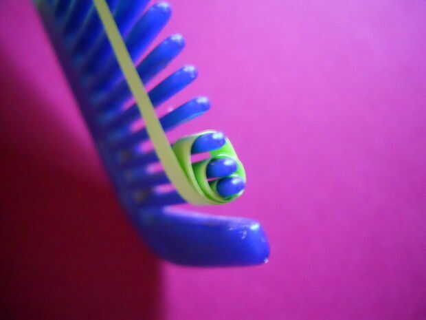 Ahora por ir bucle alrededor de los dientes del peine como se muestra en las fotos.