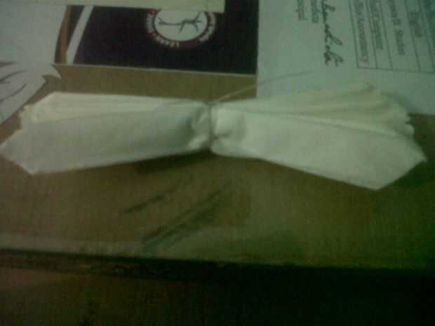 encontrar el punto medio de papel de seda y tomar el hilo y hacer un nudo apretado en el punto medio