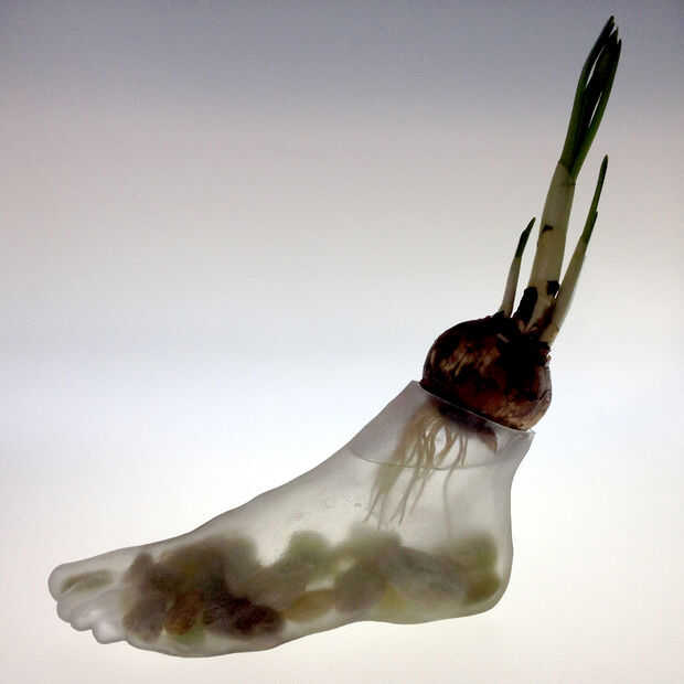 Esta fue la inspiración para mi Flora de prosodia, o planta del pie. He creado una exploración 3D de un pie con Autodesk 123D Catch, que edité en Autodesk Meshmixer. Entonces llevé la geometría de la malla limpia en Rhino software para manipular la superficie con la paramétrica Grasshopper plug-in de modelado. El objetivo era crear una superficie en el pie que se asemejó a una planta. Por último, crear impresiones 3D de resina transparente para utilizar como un contenedor para una planta que puede crecer hidropónico, para que sus raíces podían verse a través de la superficie translúcida de pie.